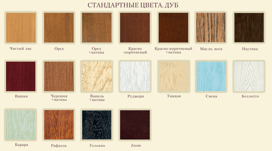 - wenge oak, also called chocolate for the predominant shade of dark chocolate;