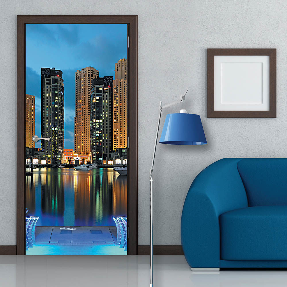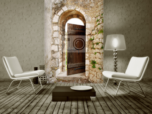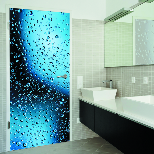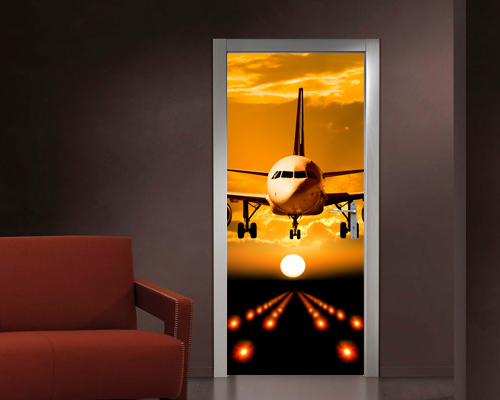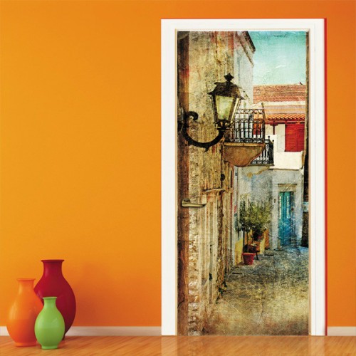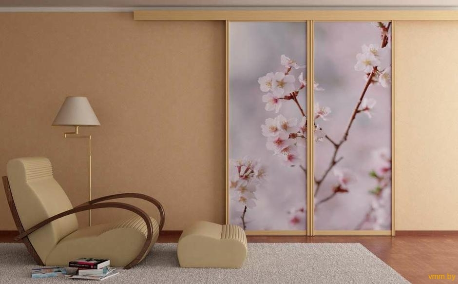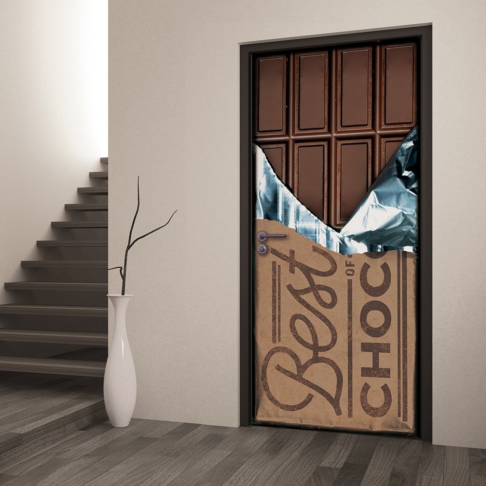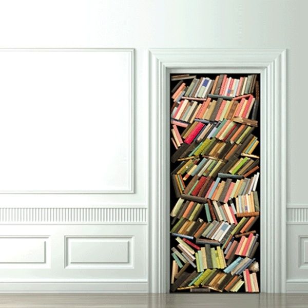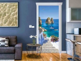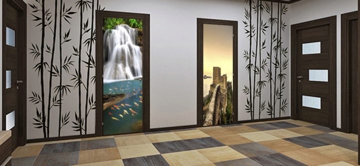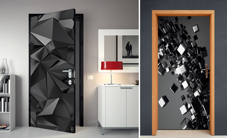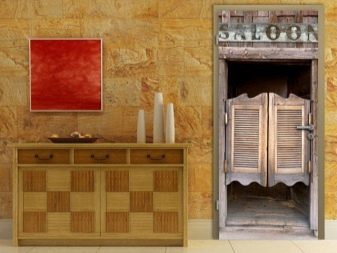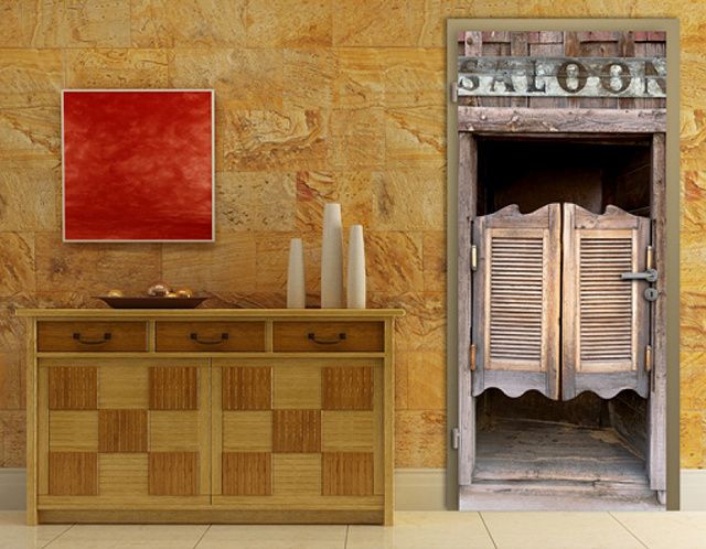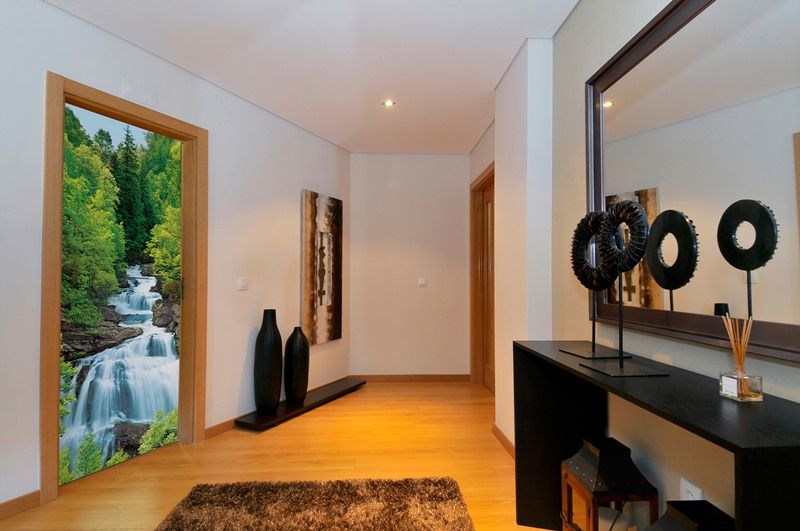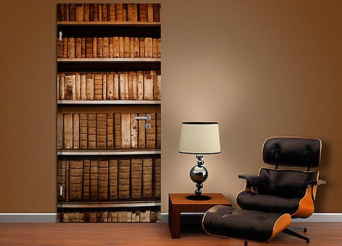 In the living room, a door decoration pasted over with a photo print imitating aged wood, cork or bamboo flooring is a frequent decoration. Also popular textures "under the skin", murals, drawings on fabric texture, landscapes with linen surface of the canvas.