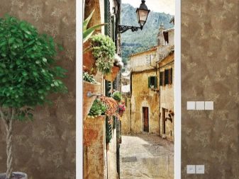 Also, when choosing wallpaper, consider the size of the door area to be glued. Based on whether the whole is a canvas or consists of several fragments, the level of complexity of the subsequent decoration will depend. This is important if you plan to engage in the transformation of the canvas without the help of specialists.