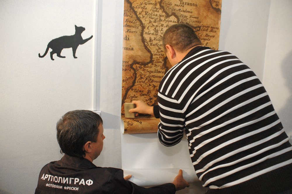Photowall-paper without glue surface needs longer preparation. First you need to make a preliminary "fitting" wallpaper to the place of pasting, especially if the panel consists of separate fragments. Depending on the texture of the wallpaper and according to the instructions attached to them, glue is applied.