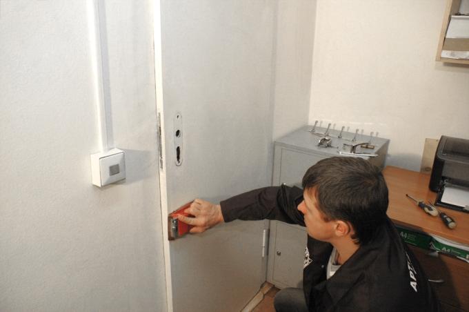 Edge of the pasted wallpaper for greater strength is further strengthened with glue. Handles and locks return to the place only after full adhesion of the fabric with the surface in the case of self-adhesive wallpaper. And in additionally glued version you need to wait until the surface is completely dry.