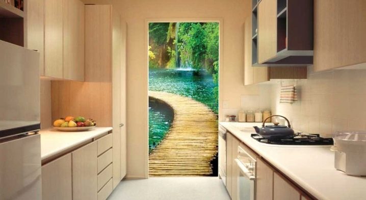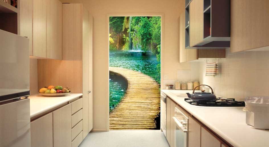 For the kitchen door wallpaper suitable with different subjects, vinyl or smooth.But not just on a paper basis, but with a protective coating that is not afraid of moisture, fumes and fading.