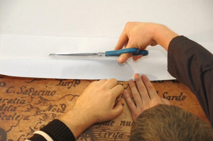 When pasting the interior door with photo wallpaper, the excess is trimmed with a sharp stationery knife. You must first leave some margin for bending.