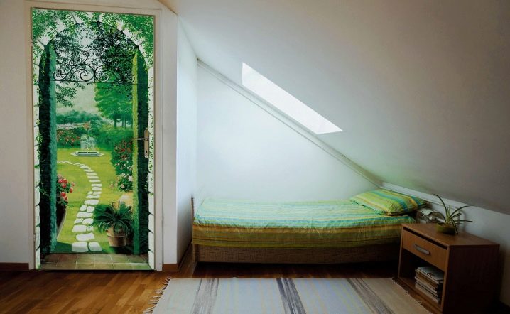 Bedrooms look romantic and intimate, if at the entrance, right on the interior door, large flowers bloom or delicate patterns in soothing colors are intricately interlaced. And for children's rooms they choose subjects that correspond to the interests of children and their age category.