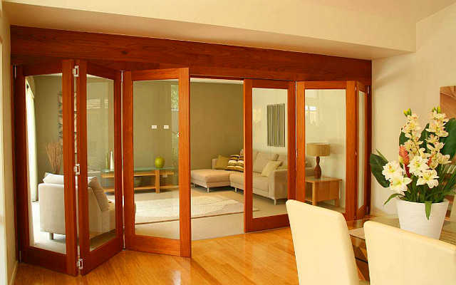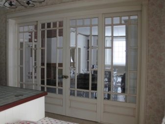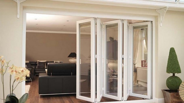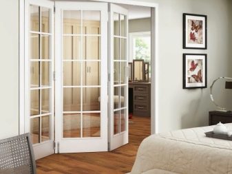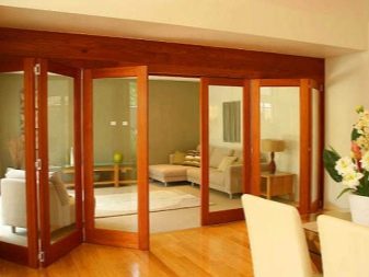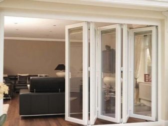 - Folding systems - this is the type of construction where the door when folded forms into an accordion. This is another more original option used to save space. It is excellent for dividing a room into zones, since in the folded position it allows to combine two rooms into one. A vivid example is the door installed between the kitchen and the dining room. When the doors are closed, these are two different rooms, and if the structure is left open, then one is large.