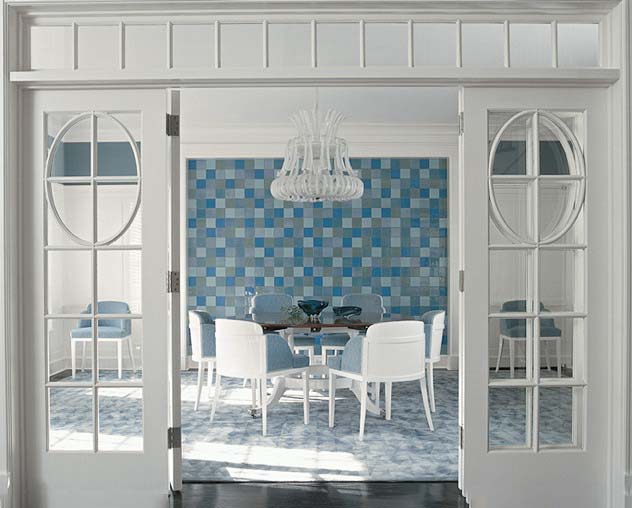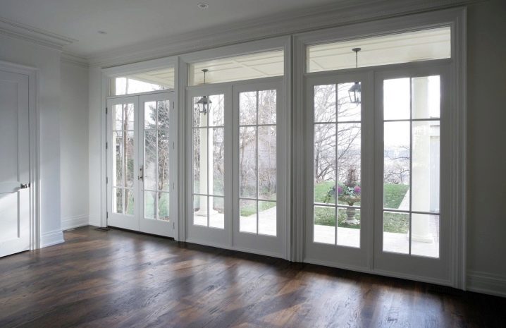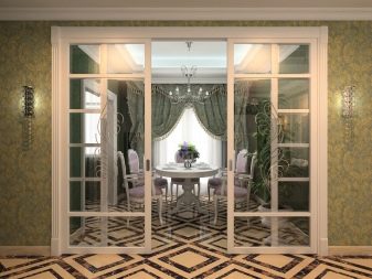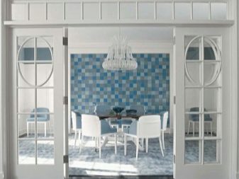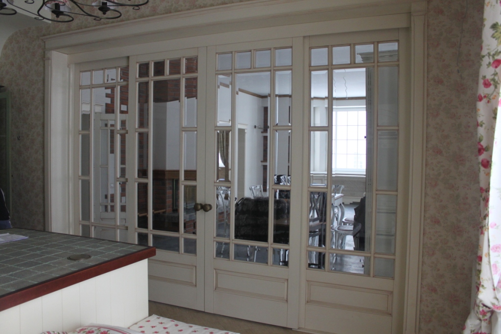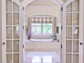 As mentioned earlier, the largest part of the design of French doors is a glass sheet, usually transparent, but at the request of the customer inserts can be opaque, and mirrored, and complemented by mosaics or any images. Glasses may have high energy efficiency and sound insulation properties, be impact resistant.