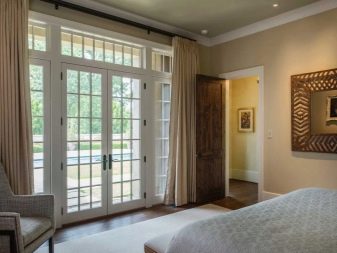 When choosing French doors, it is necessary to remember that glass is a rather fragile material and can easily break, so experts recommend installing (especially on entrance or balcony doors) a special type of glass cloth with increased strength.Such glasses are called armored, they are able to withstand considerable mechanical stress and, moreover, create a high level of heat and sound insulation.