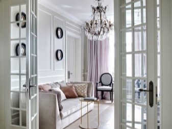- Swing - This is a classic type of French designs. The most suitable option for spacious and large rooms. Easy installation and noble look make them the most popular among customers. This type of door is very well suited for living rooms, they also bring hospitality and hospitality to the halls of public buildings.