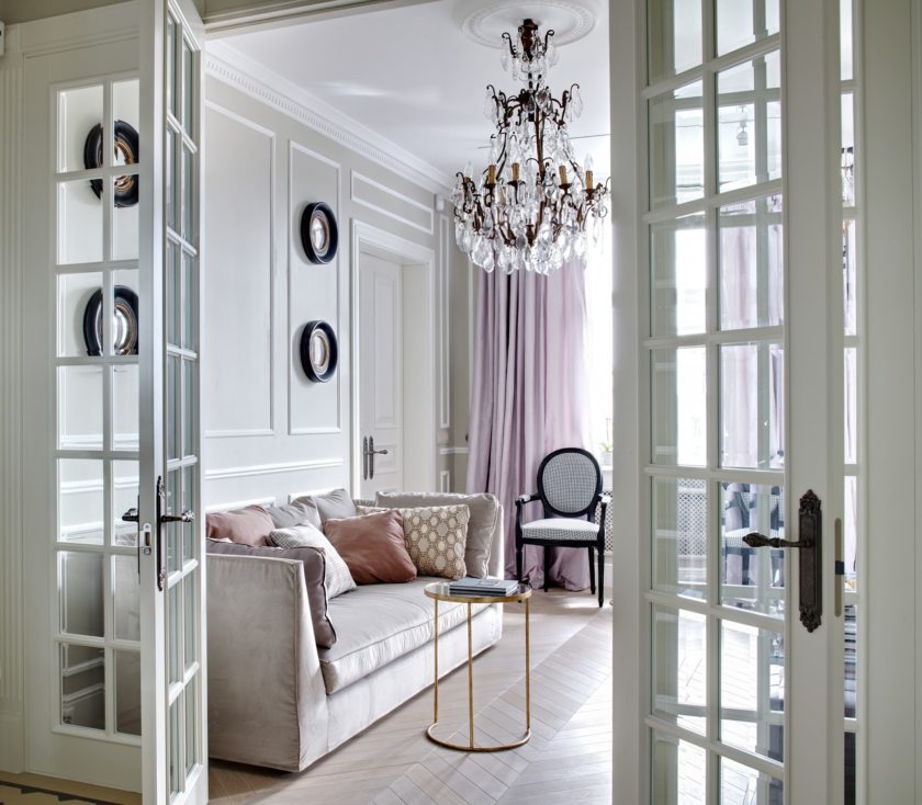 Exquisite and at the same time strict French glazed doors will give a special charm to almost all styles of interior. In the classic interior, the addition will be high and sweeping designs, they will find their application in large and spacious rooms, visually increasing the space even more.