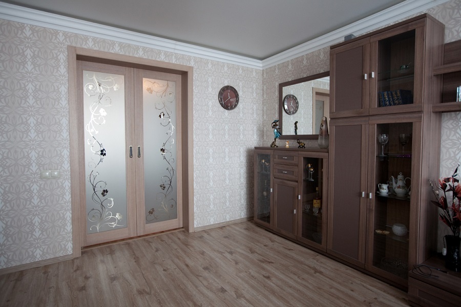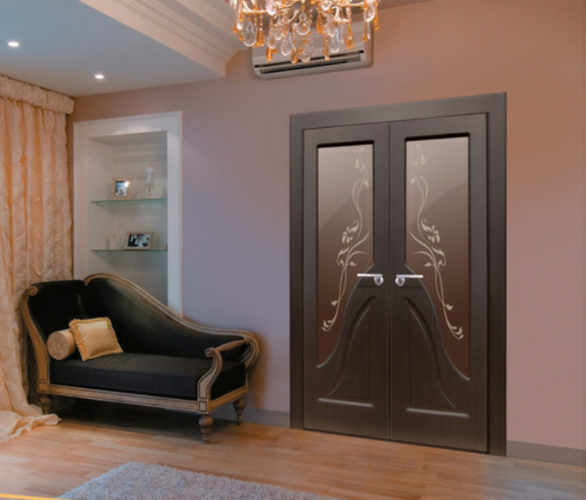However, such interior doors for the living room have a number of disadvantages, the first of which is the high price. Installing such paintings will pour you into a pretty penny. This option is not for thrifty people.