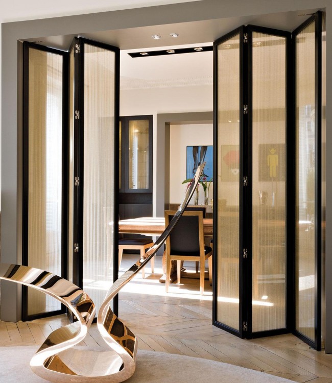 Recently, sliding structures (sliding, coupes and the like) have become popular. Such products are able to emphasize the beauty and originality of your interior. They are quite practical, because before the doorway there is a necessary free space. The case is one more type of doors for a drawing room. It fits perfectly into the interior in the style of hi-tech. Fans of Japanese style in the interior will also appreciate their beauty and sophistication.
