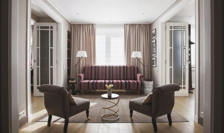 Classic doors choice for the living room are swing doors. But this choice is not always justified and logical. Often the entrance to the living room has a large width, and in this situation, swing models will not work. For wide entry into the living room, choose double doors. Double-wing models are a modern and practical solution. Such a door will be very convenient in the repair, when it will be necessary to bring large-sized furniture into the hall.
