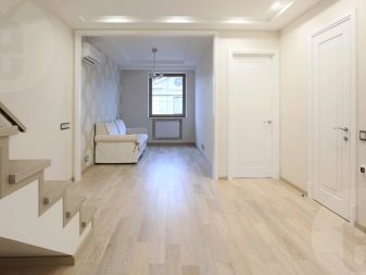 The overall style of the interior design of the apartment is dominant relative to the rooms, made in a different style. If different laminate flooring is used in different rooms, then it is necessary to find the shade of the door leafs, universally combined with it. Here you can focus on neutral shades of light wood, ivory color and other tones or golden - alder, honey birch.You can get by with a special threshold in the doorway, combining their color range like a buffer.