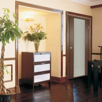 - Platbands mounted on the door frame with door leaf can be purchased separately. They should be combined with the color of the floor covering.They are also chosen to match the color of the nut and the baseboard, and in more rare cases, and under the furniture.