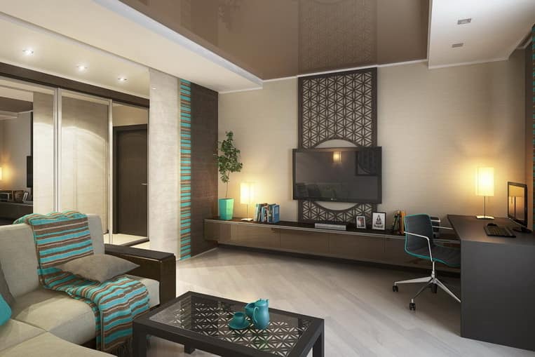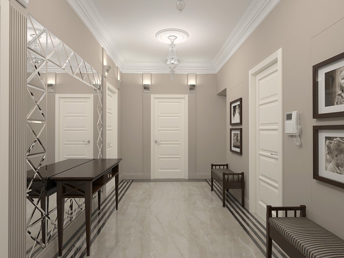 There is one more color left - it can be used for walls. Well, decorative items installed in the room to their own taste (vases, lamps, carpets, deer horns) should fit into the decorated interior.