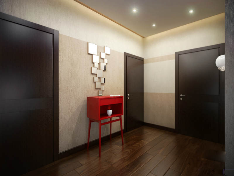 - Very often there are several doors in the premises, for example, in the hallway. Being its front part, they are clearly visible who entered the apartment. They can be painted in one color with the wall. Then they will mix in the room between the walls and will not stand out. This will help ensure the correctness of their combination. This especially applies to large rooms.