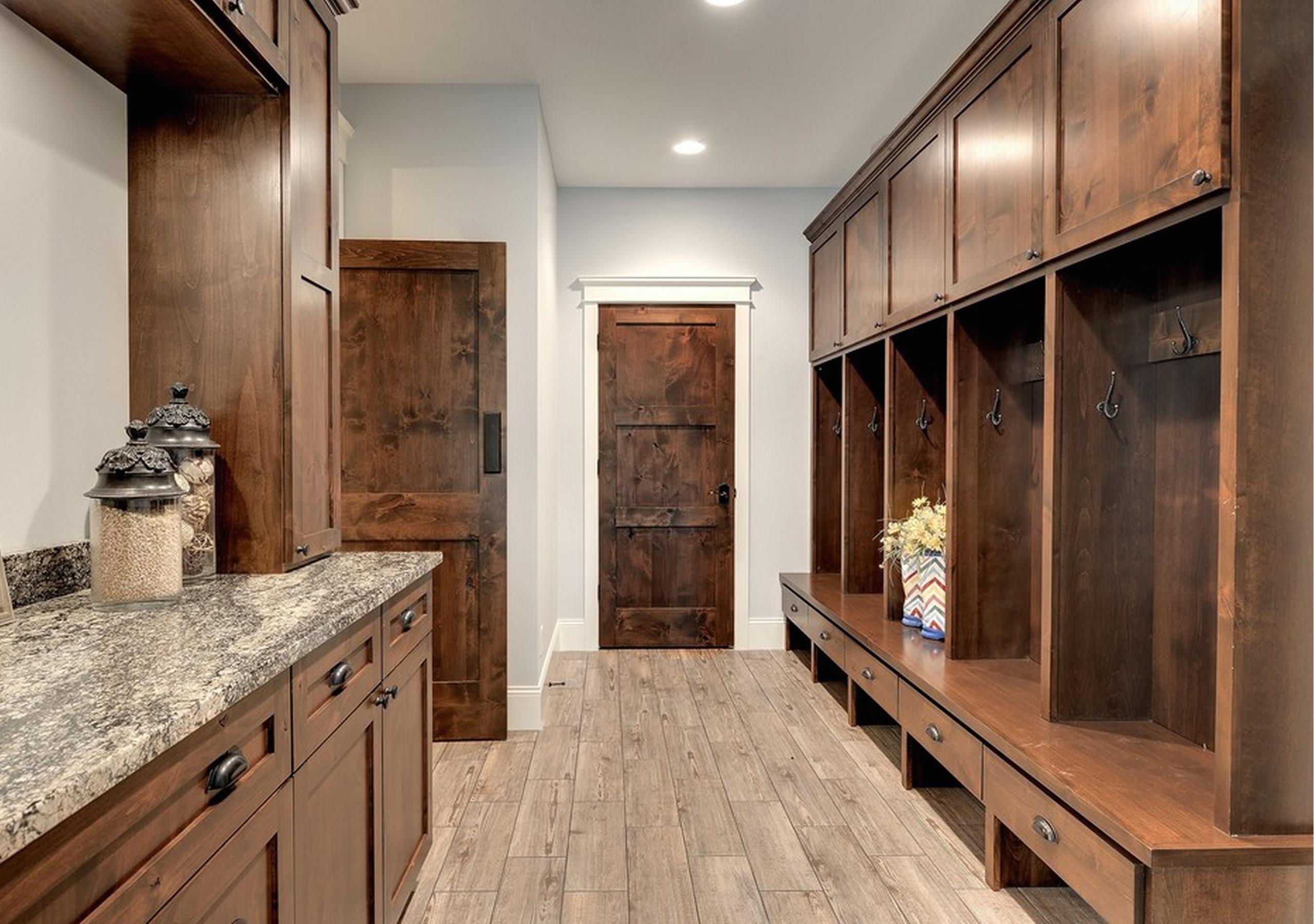 Platbands choose the same tone with the floor. In such an interior, furniture of similar shades looks very good, but it is 1-2 lighter in color. Doors and laminate brown shades are perfectly suited to vintage styles of Provence and Country.