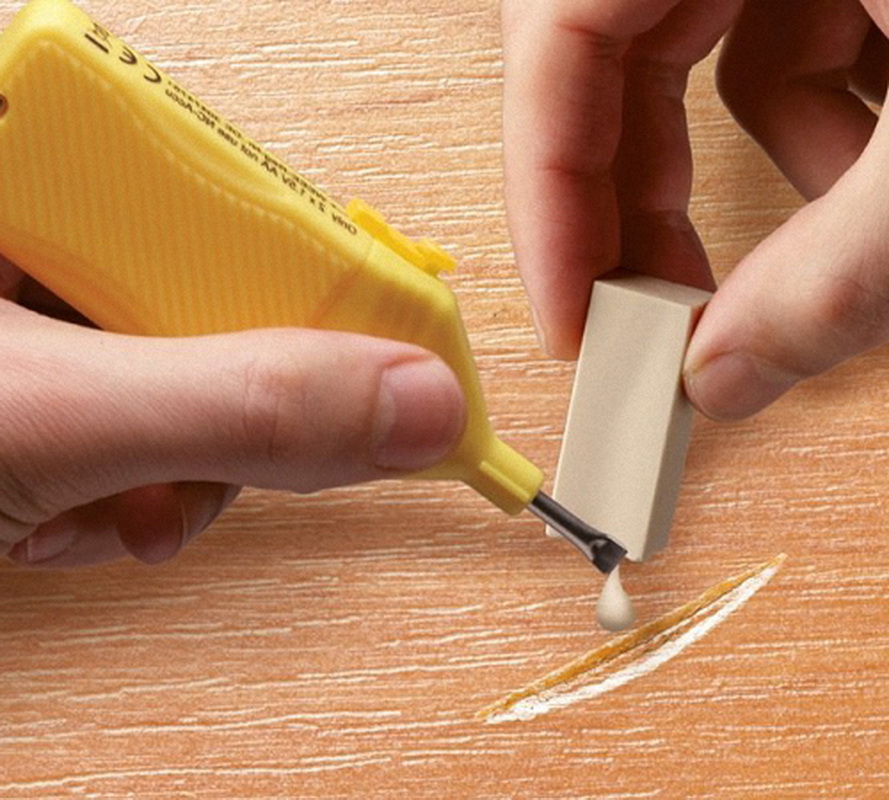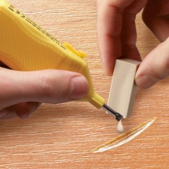 If there is a laminated coating on the door - instead of varnish, a construction marker is used that matches the color.