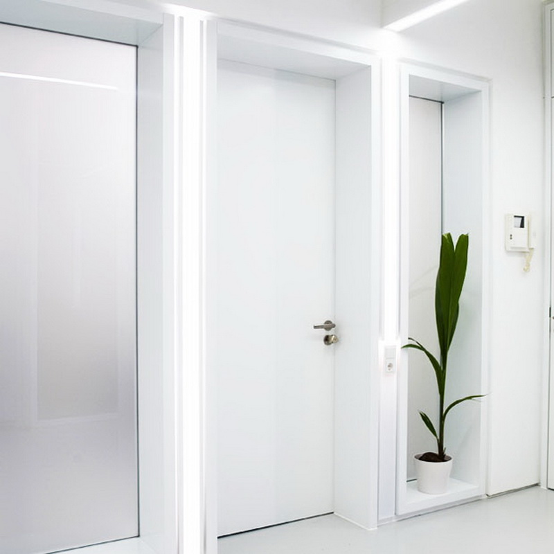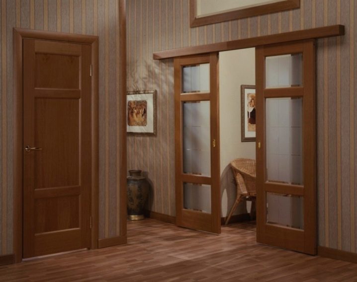 If the customer prefers door designs without a threshold, the cassette-compartment ensemble of the sliding type is what he needs. Compact interior doors, clad in a cassette mechanism that can be built into the wall, will provide both heat preservation and additional noise insulation.