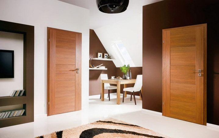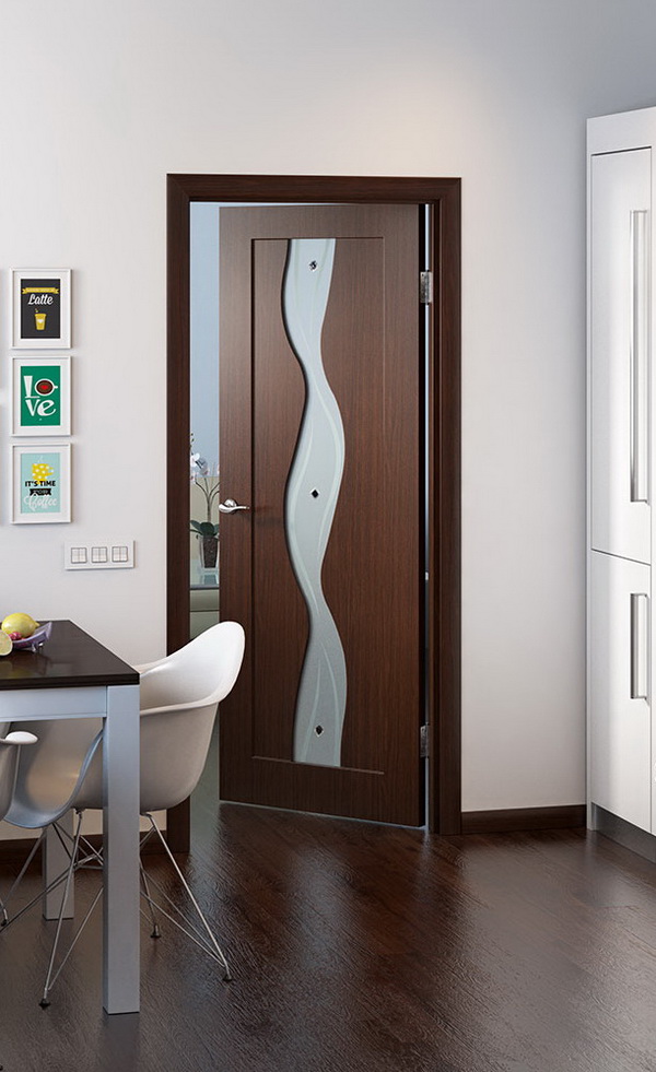 One can talk endlessly about the possibilities of film coatings disguised as the most expensive tree. Film, firmly growing together with a wood panel can look like an array of walnut or pine, and its shades range from brown to wenge. Any door can be either solid, without glass or plastic inserts, or transparent, which gives it additional aesthetic advantages.