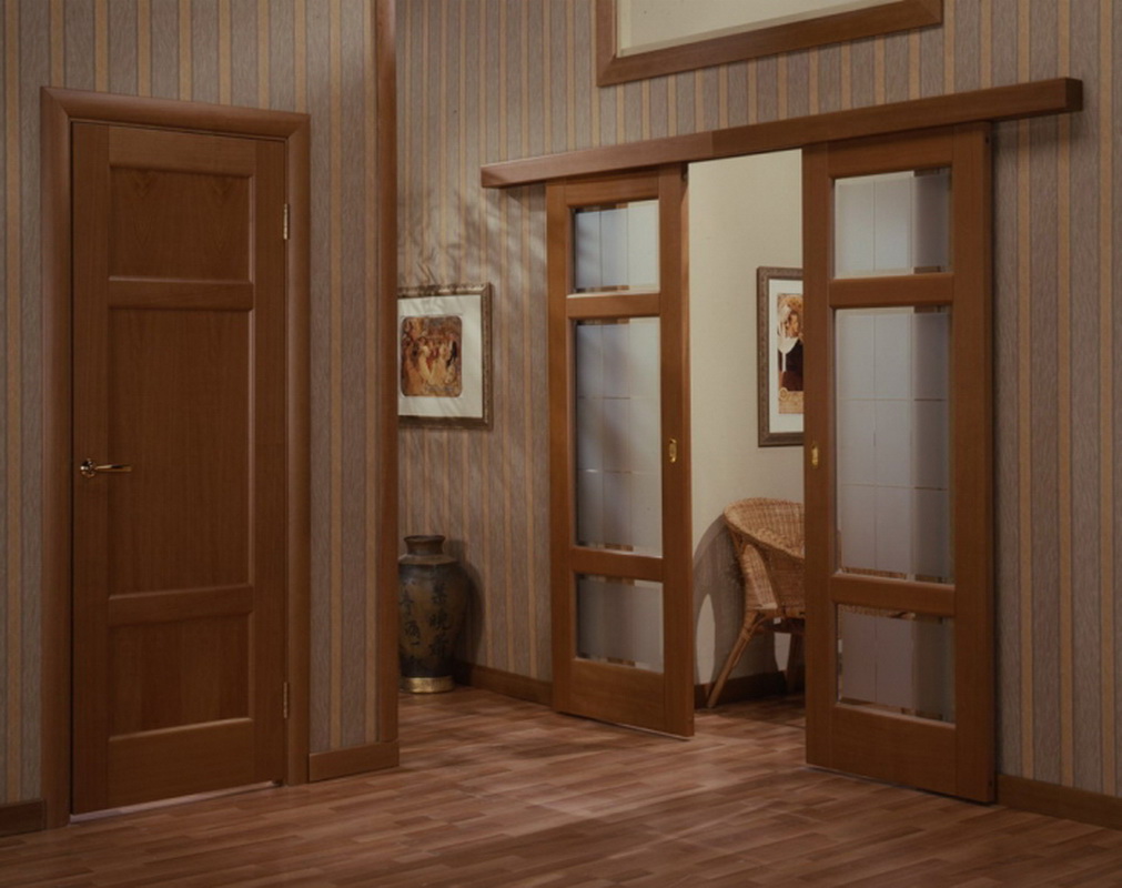 Double swing doors more often, they are installed outside as an entrance, when, if necessary, a large number of people can enter the second door at any time, or leave it closed depending on the terrain. However, the double-wing designs are interior. Double doors are installed in the case when it comes to, for example, large rooms in country mansions or public institutions, when too large a doorway makes it impossible to install a standard single door, which can open both outward and inward.
