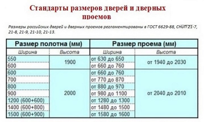 If we are talking about standard apartment buildings, the dimensions of the door "boxes" and openings are also typical.It is very easy to work with them, and when planning the installation of interior doors there should be no serious hitch and problems. Due to the fact that all manufacturers are focused on the standard door dimensions adopted by GOST, this greatly facilitates all the work.