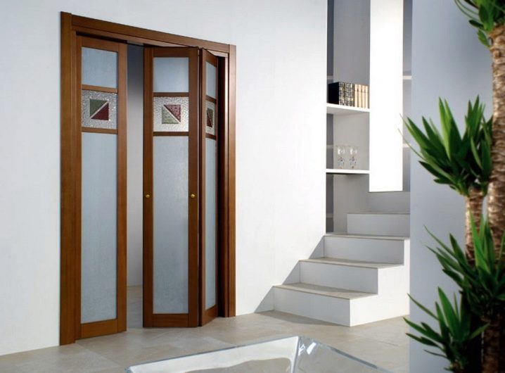 The doors of the “accordion” door are connected to each other by special hinges, the number of which directly depends on how many parts of the “accordion” there is in one or another door. Much, as always, depends on the doorway, which most often comes in non-standard sizes.In the overwhelming majority of cases, this type of door is mounted in such conditions, becoming a “salutary” way out.