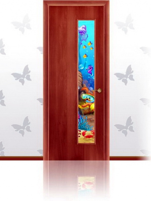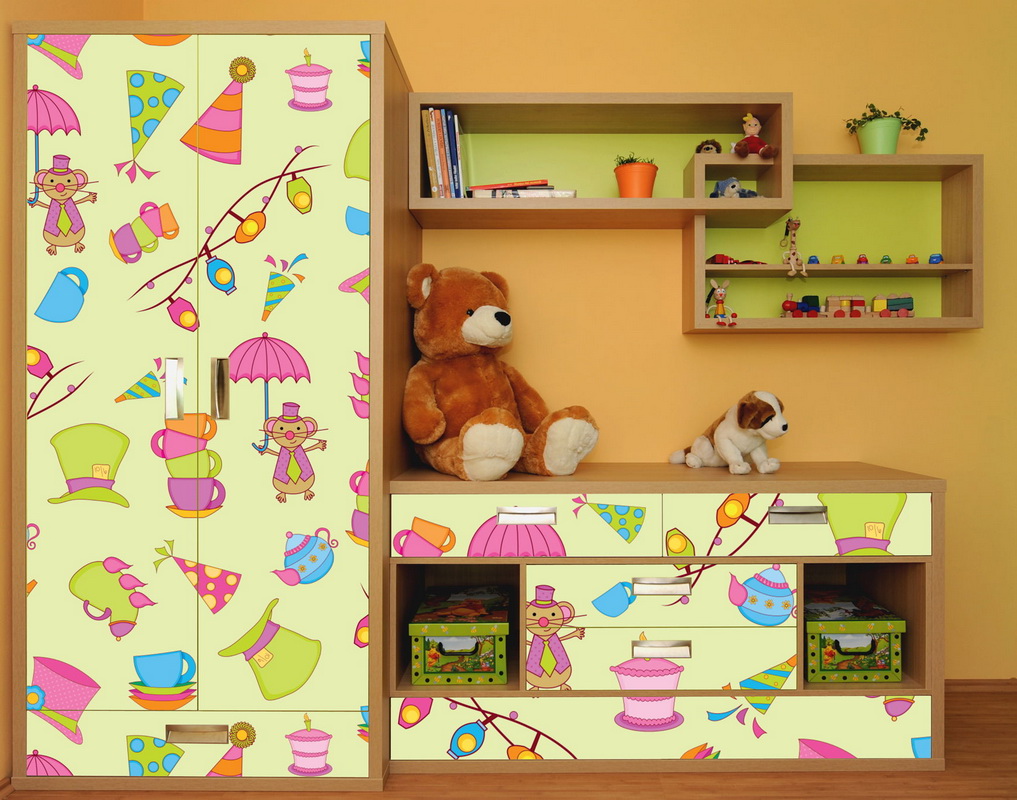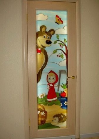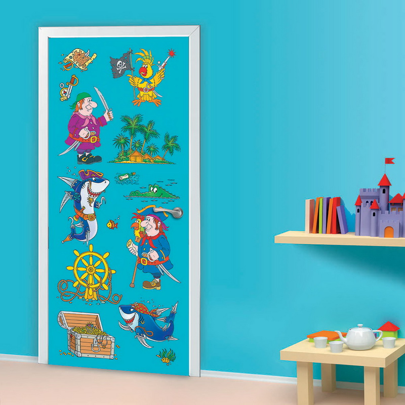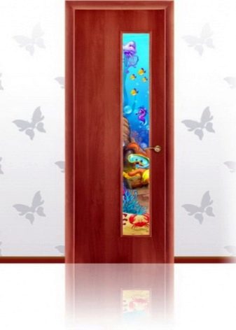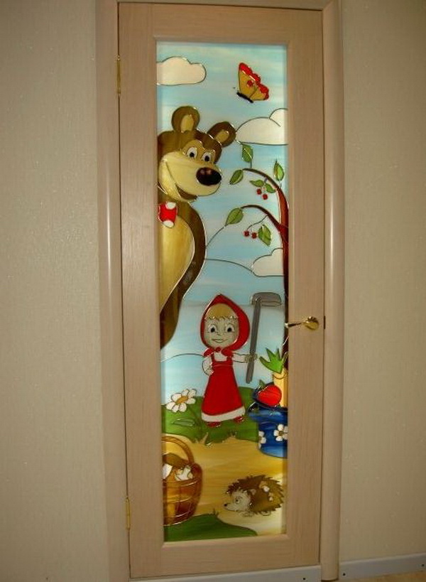 Options for colors and design of films for pasting the doors of children's rooms are endless. Here you can choose material with the image of animated characters or just a colorful bright print.