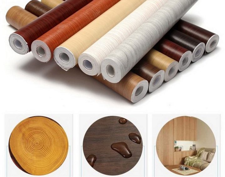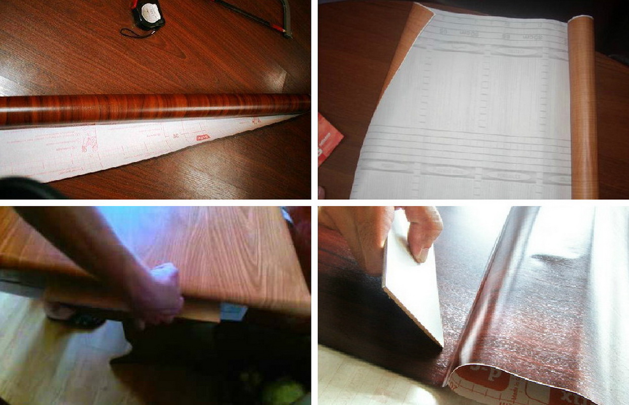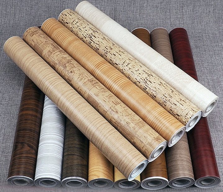 The market offers a variety of colors and textures of self-adhesive films. Depending on your desire, you can purchase material with a wood pattern or even with imitation of leather.