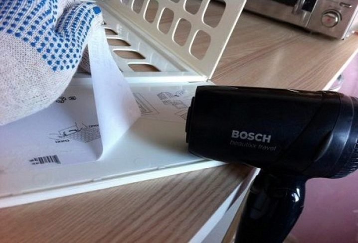 You can try to remove the film without the use of any additional work. As a rule, it is perfectly removable from a plastic door and glass surfaces. If it is impossible to tear it off or it moves hard, then it is better not to risk it, since it is possible to damage the door cover. In this case, you can use a hairdryer - domestic or construction. When heated, the adhesive will become soft and pliable and will not prevent the removal of the film. It is necessary to heat a small area from the edge, and then carefully remove it, then the next, and so on, until you remove the entire film.