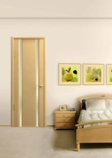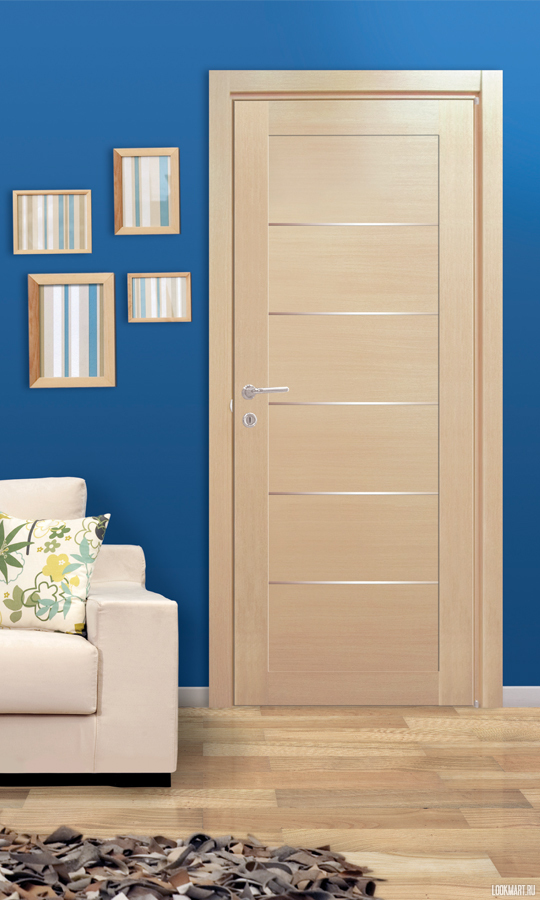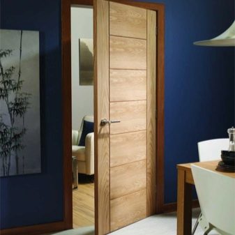 The ash door will look good in a room with multi-colored wallpaper. For example, it may be dark blue, purple or green variants.