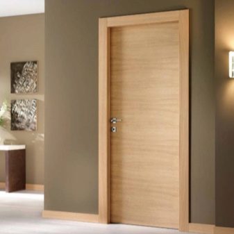 Veneered doors are made of two sheets of veneer. Sheets can be both natural and artificial. For the production of such models is taken wood of natural origin. Selecting spectacular doors made of oak veneer, it is worth considering that under the influence of direct sunlight the color of this raw material can lose brightness and saturation.