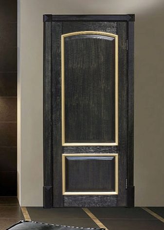 You need to be careful with the black oak door. Such structures are recommended to be installed only in rooms decorated with lighter materials. For example, it can be gray walls and dark chocolate bar on the floor.