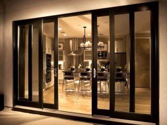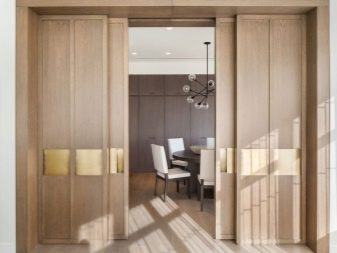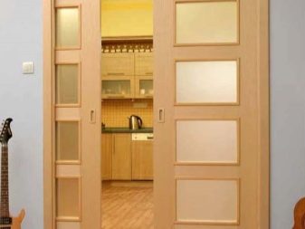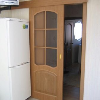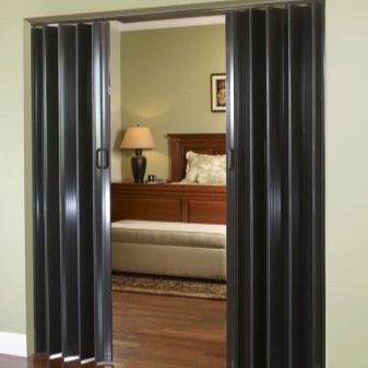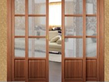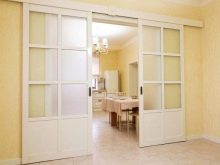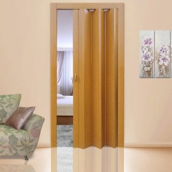 The principle of movement of these types of compartment doors is intuitive from the title. Due to the peculiarities of addition, these doors are the most compact and unpretentious to use and care, they occupy a minimal amount of space, even if they capture most of the doorway. The only drawback of these products is problems with noise insulation and odor insulationthat is relevant when it comes to the kitchen area. But as a decorative element or element of zoning, they are indispensable.