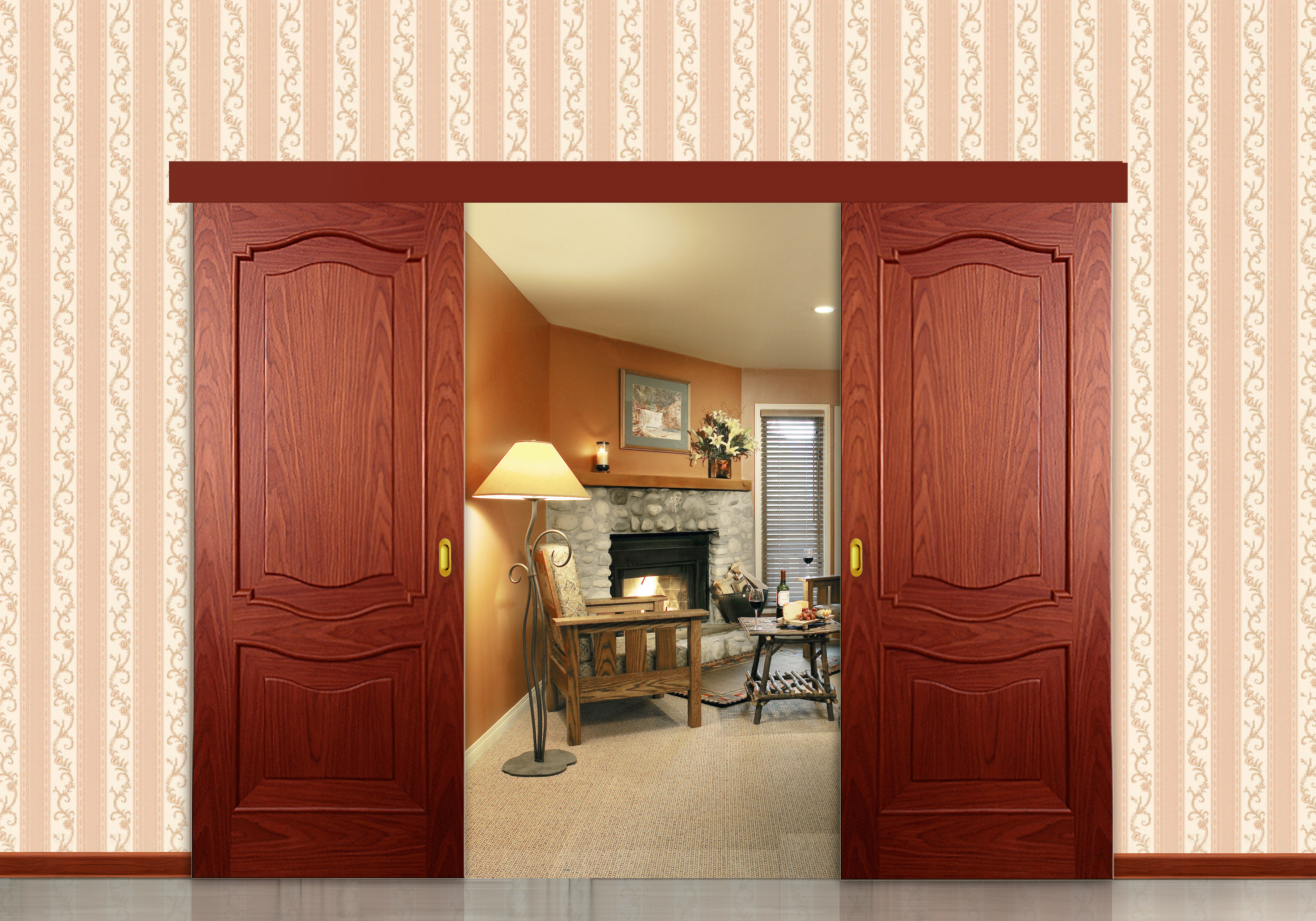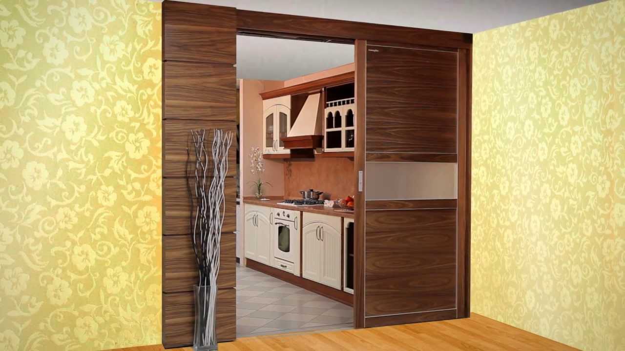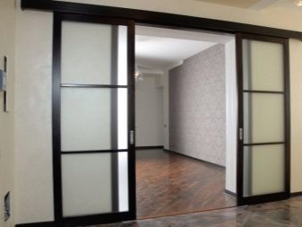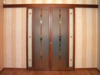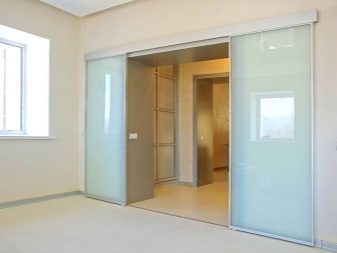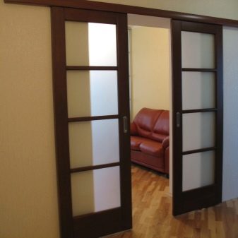 - Aperture doors. The mechanism of movement of this type has two guides, like cascading doors, but its feature is that it is located inside the doorway, and when opened, leaves only one half accessible for passage.