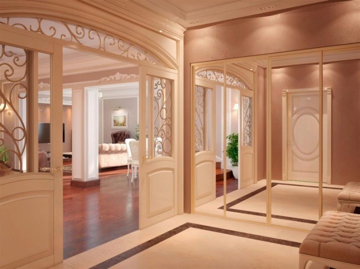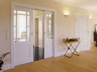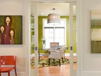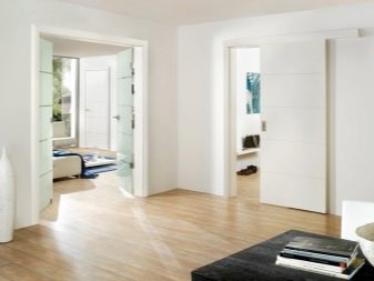 It is important that the design of the doors harmoniously fit into the interior and does not look alien.To do this, you need to take into account not only the color scheme, but also decoration in conjunction with textured solutions. It is necessary to decide on the belonging of the coupe door: either it will be a piece of furniture in this or that room, or a decoration element. Depending on this design is chosen.