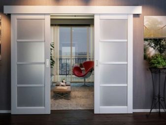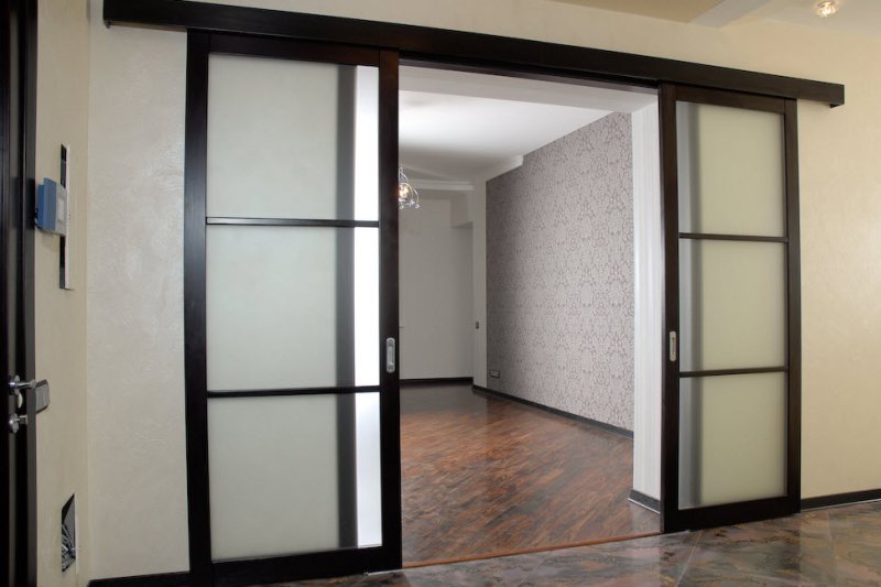 - Standard compartment doors. The classic view of the mechanism, where the door leaves move along guide rails along the wall, while the number of panels is not important.
