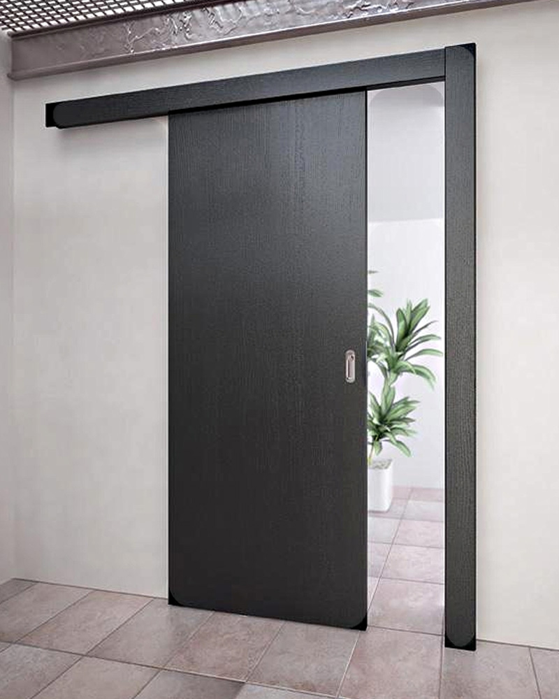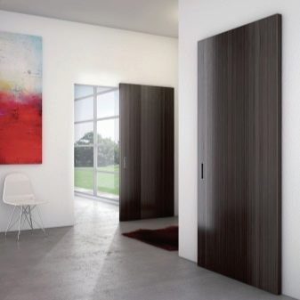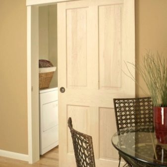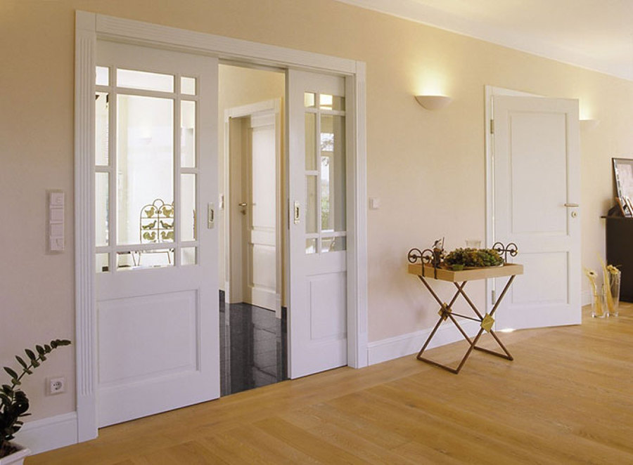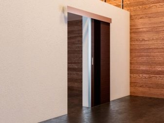 - Cassette doors. Guides of cassette doors built into the wall allow the doors to open when hiding in additional plasterboard niches (canisters), otherwise the principle of operation is similar to conventional compartment doors.