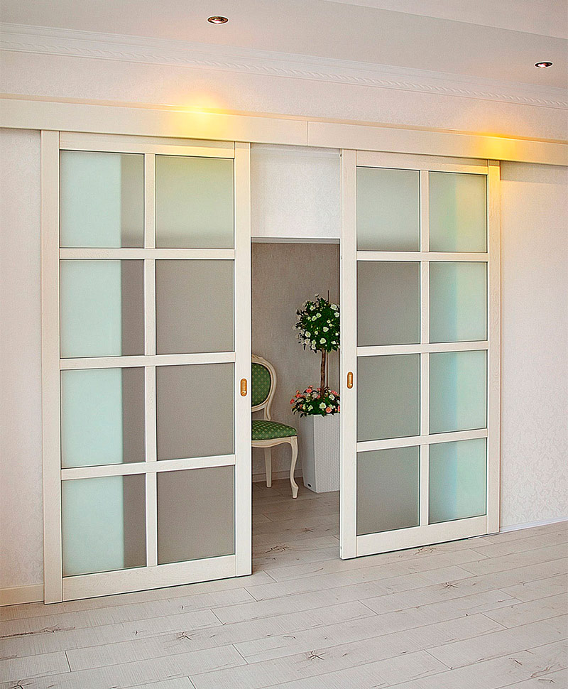 Sliding doors are an excellent solution for both small apartments and spacious private houses.These products are able to serve as a full interior door, but can also be an additional partition for zoning. The peculiarity of these structures lies in the arrangement of the mechanism of their movement. Products have a number of advantages: