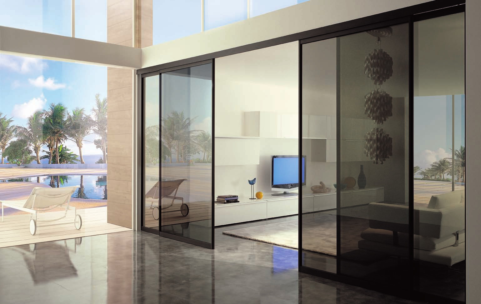 - The parallel-sliding system may consist of one or more door panels. The principle of opening and closing them lies in the movement parallel to the surface of the walls, that is, they move apart along vertical planes.