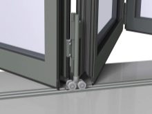 A door kit weighing about 120 kg should be mounted on a pair of guides with floor and sub ceiling fixings. And on each canvas will fall on two carriages with four wheels on each. The bottom carriages together with the guide will take over part of the load, the rollers will allow you to adjust the position of the sash, compensating for small unevenness of the floor. At the bottom can be installed a pair of rollers with a rubber rim. This will not only eliminate the noise from the contact of the valves, ensure smooth sliding along the profile, but also give the system greater security.