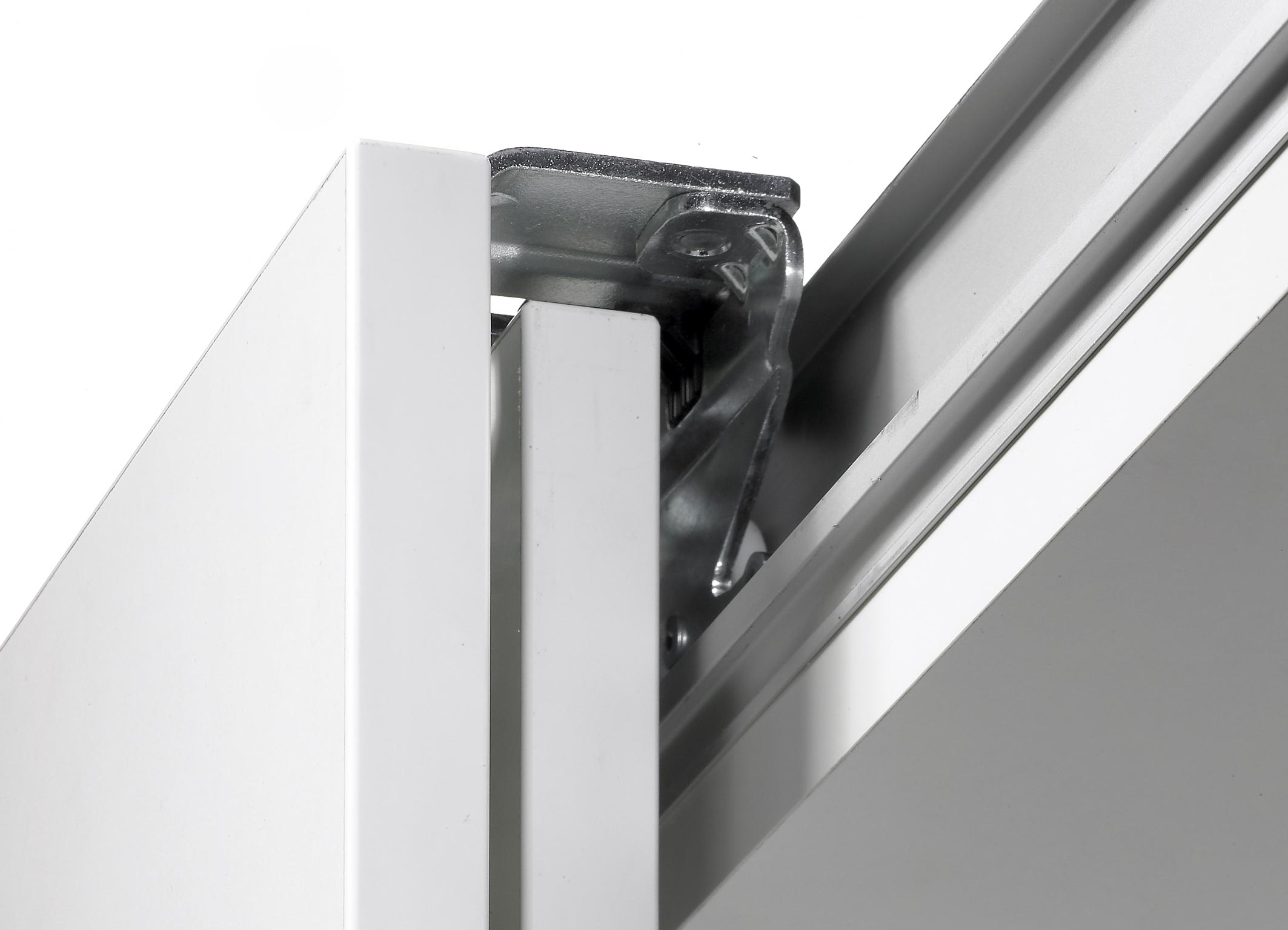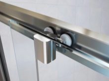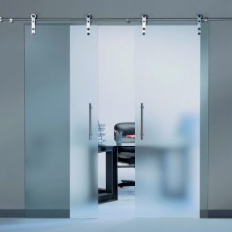 The compartment door can have an opening mechanism in which a single profile rail for one door or a telescopic construction for several doors is attached exclusively in the upper part to a wall or ceiling. In such relatively inexpensive systems, suspended doors move along rails using fixed roller carriages. Slide the pads gently prevent the planes from slipping into the final position. In the surface fastening method, a decorative strip is often used to mask the guide.