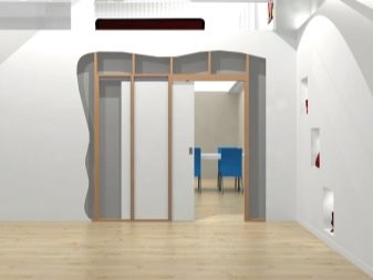 - For a cascade structure made up of several webs that provide a multi-stage opening left-right or on opposite sides of the doorway.This design is very convenient for distinguishing spaces with different functional loads: a kitchen-living room, a bedroom-study, a dining-living room, etc. The multi-leaf system is also convenient in that it allows you to open the door fully or partially. For example, you can move one or two panels, hiding from the view the main space of the room or push all the doors at once.
