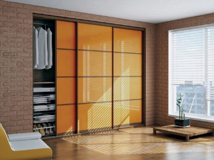 - Doors, moving freely along a rail in the form of a long floor spike or rail, are successfully used for organizing storage systems in wardrobes and built-in mini wardrobe rooms. The use of such doors contributes to significant savings and rational use of space.