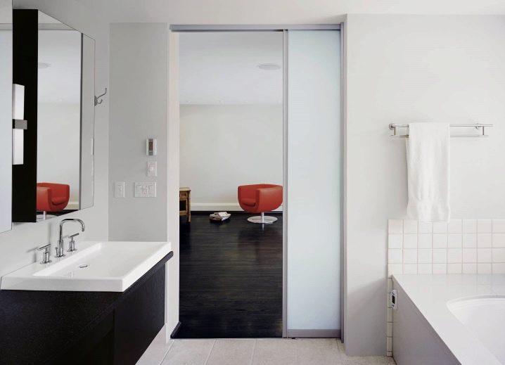 When choosing a sliding door for a bathroom, you should remember about some important features of this space. First, the bathroom - the most frequently visited room in the house. This means that the door leaf should be made exclusively of high quality and wear-resistant materials. Secondly, the materials from which the door is made must be resistant to moisture, steam and high temperatures.