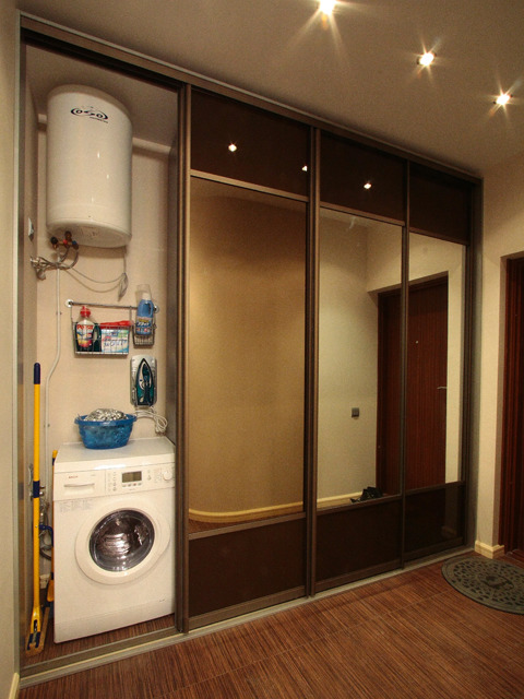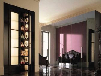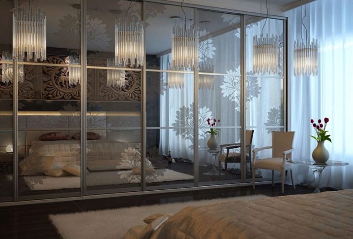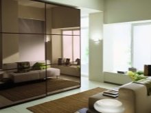 Due to the mirror reflection of the greater part of the room, the room is increased several times. This, too, can be classified as an advantage. In addition, this design is not as difficult to maintain as it seems at first glance. In fact, you just need to clean the door, because it is covered with a special solution. This coating makes it resistant to dirt.