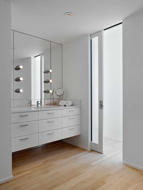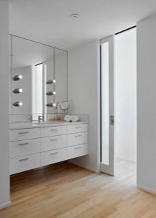 - Bathroom. In the bathroom, the mirror door will be quite functional, because it will not only separate one room from another, but also serve as a full-length mirror. So you can fully appreciate your appearance.