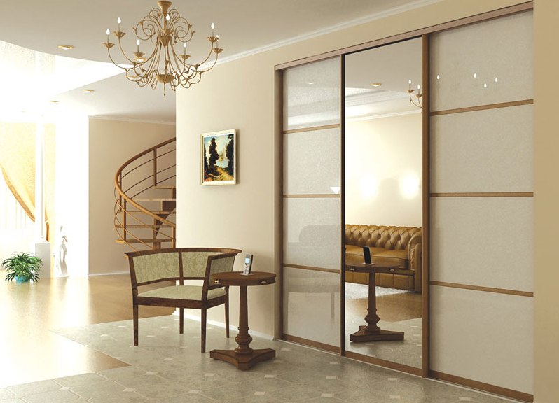 Mirror sliding doors can be made of different materials. The basis is always used a mirror, but the frame and the base may be different.