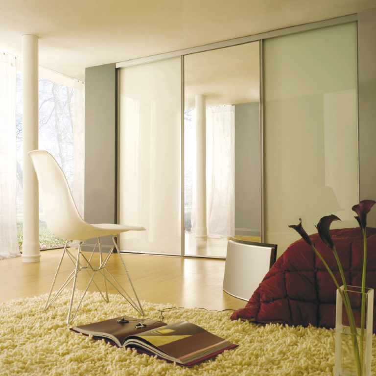 - Living room. In the living room mirror door is installed primarily in order to slightly expand the space. That is why it is recommended to choose fully mirrored doors. Their maximum width depends on the width of the doorway.