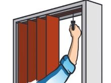 Installed sliding design of 1 or 2 sheets - depending on the width of the opening. A special guide is attached to the panels above or below. To the door-accordion opened and closed as smoothly and accurately as possible, the design is equipped with synchronizers. For fixing the canvas in a certain position there are special stoppers-flags.